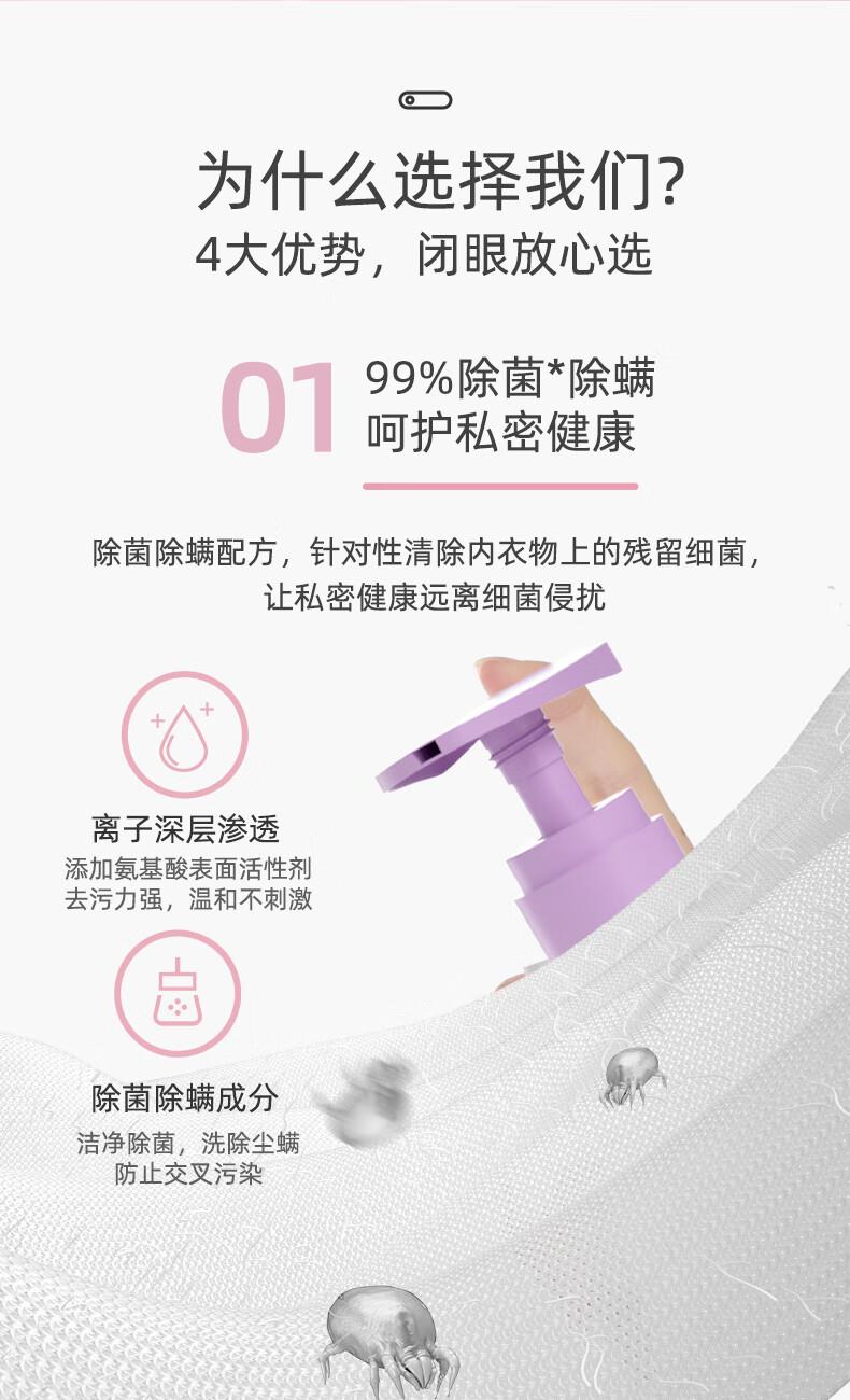 4、率99%,有效除螨,呵護私密健康,配方專門 針對內(nèi)衣物上的殘留細菌