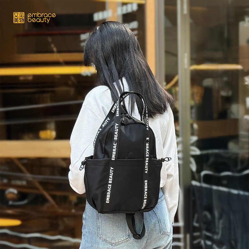 可自由切換背包/托特包兩種形態(tài):小巧雙肩包輕松轉(zhuǎn)換為通勤托特包,對(duì)內(nèi)折疊設(shè)計(jì)實(shí)現(xiàn)包型蛻變
