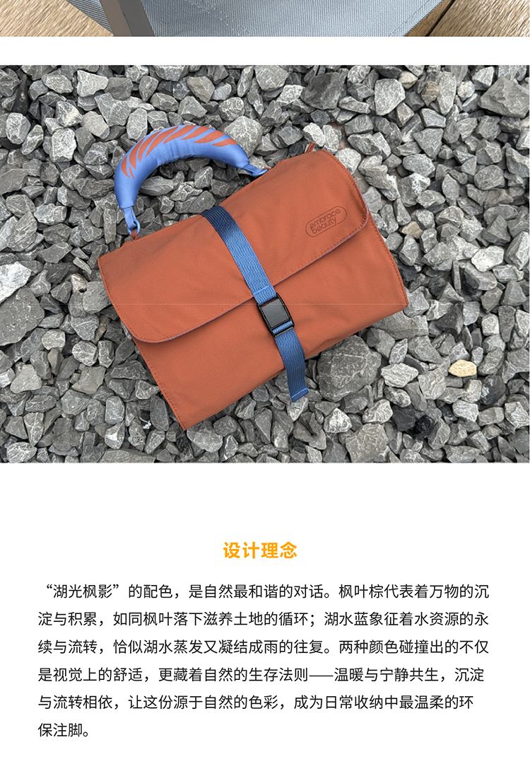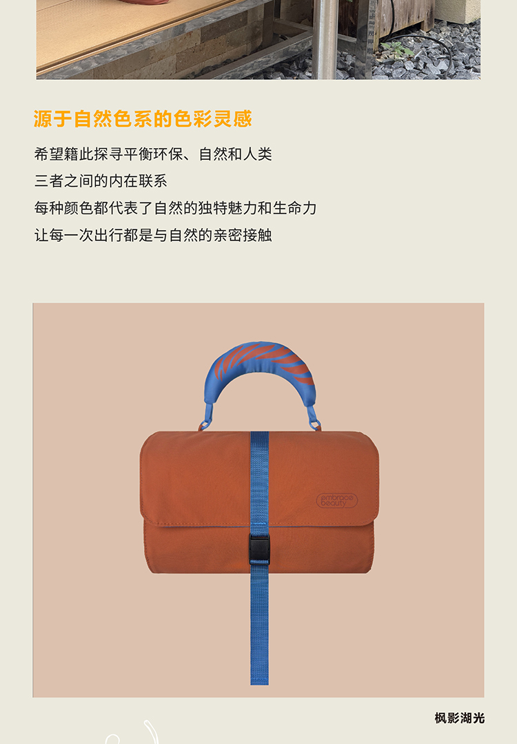 自然色彩哲學(xué):外覆楓葉棕的溫潤(rùn)質(zhì)感,內(nèi)蘊(yùn)湖水藍(lán)的寧?kù)o清透?!昂鈼饔啊钡呐渖?,將循環(huán)再生與自然之美緊密相連。