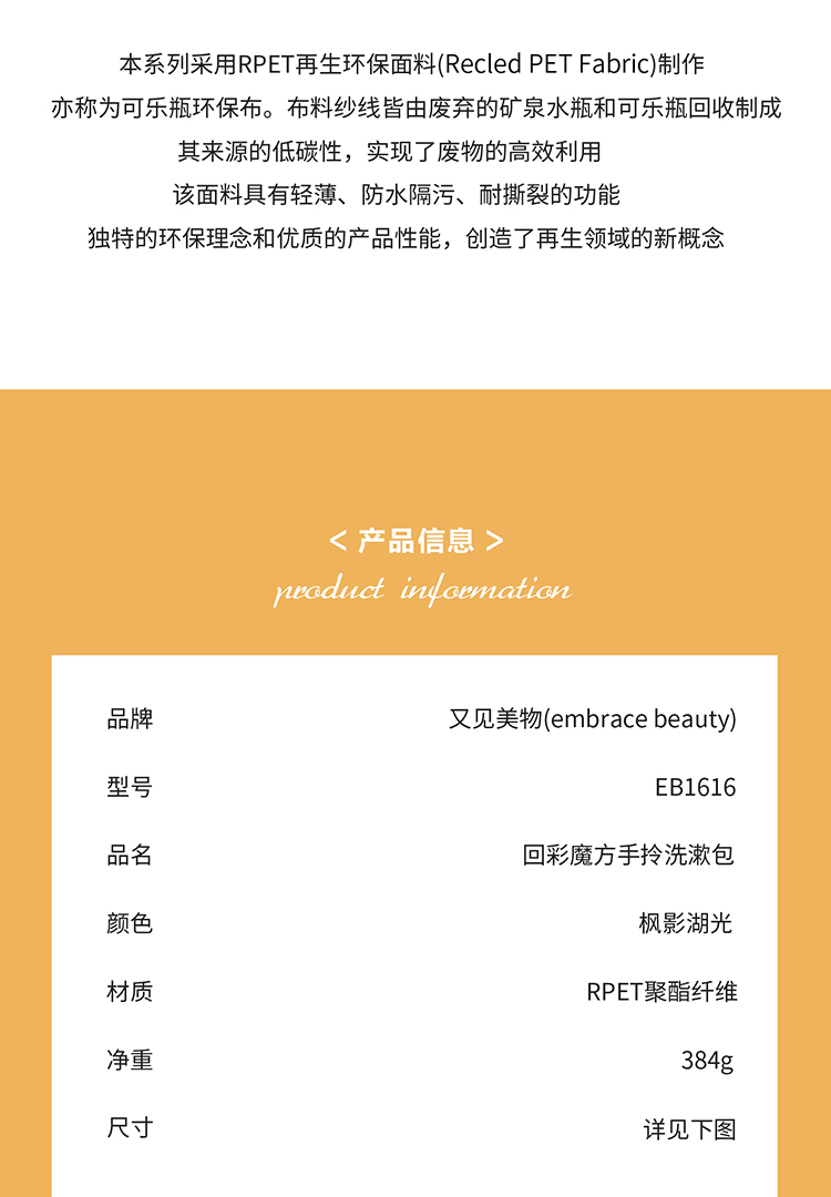 環(huán)保禮品又見(jiàn)美物回彩系列魔方手拎洗漱包EB1616
