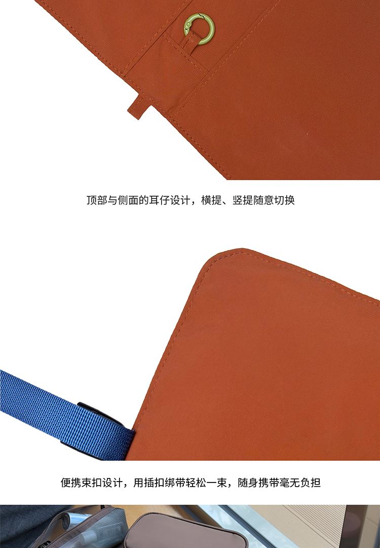 便攜束扣設(shè)計(jì):卷起后,用插扣綁帶輕松一束,整潔利落,隨身攜帶毫無(wú)負(fù)擔(dān)。