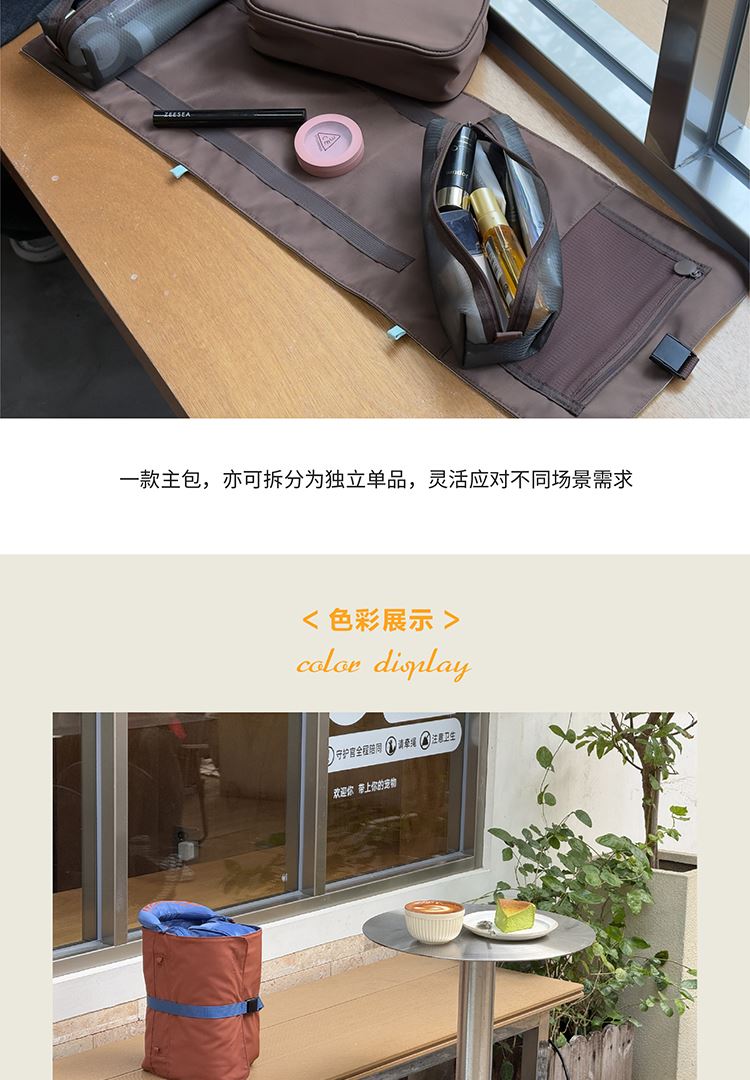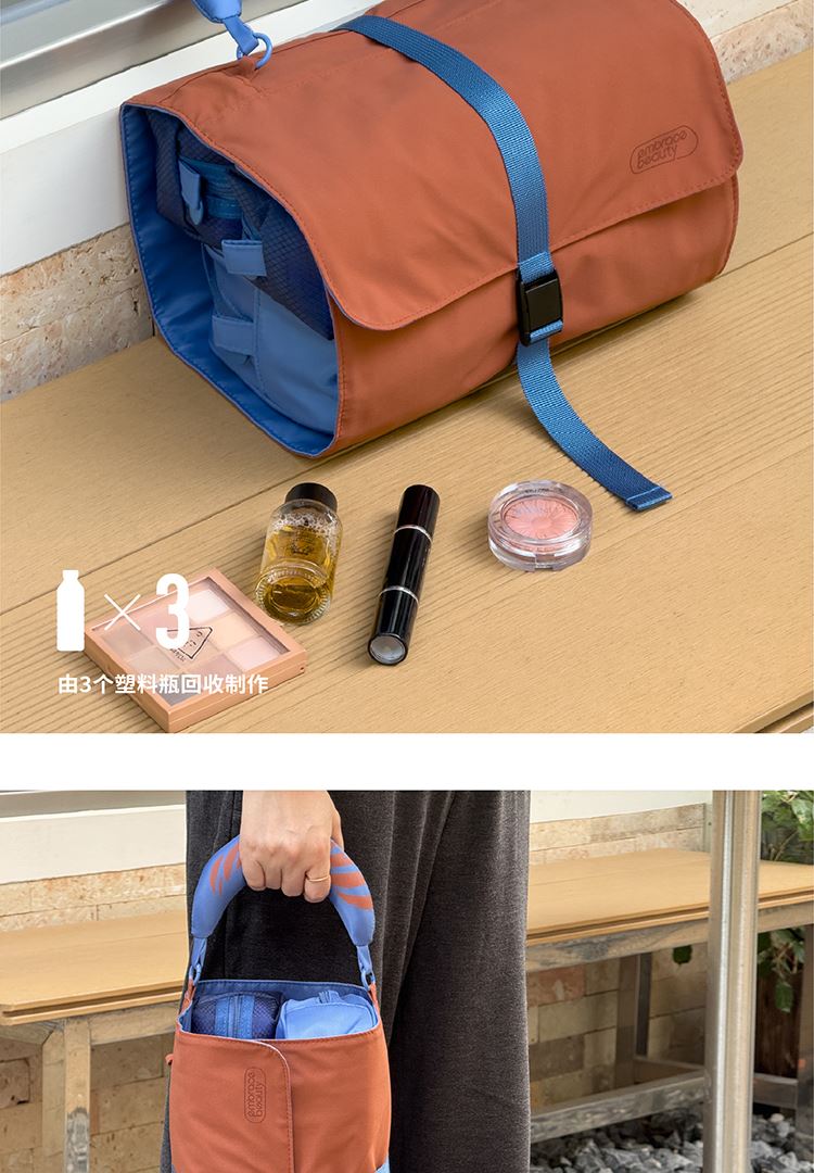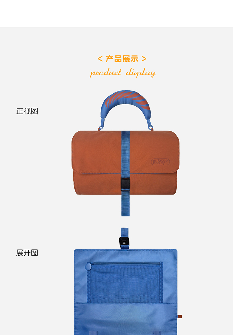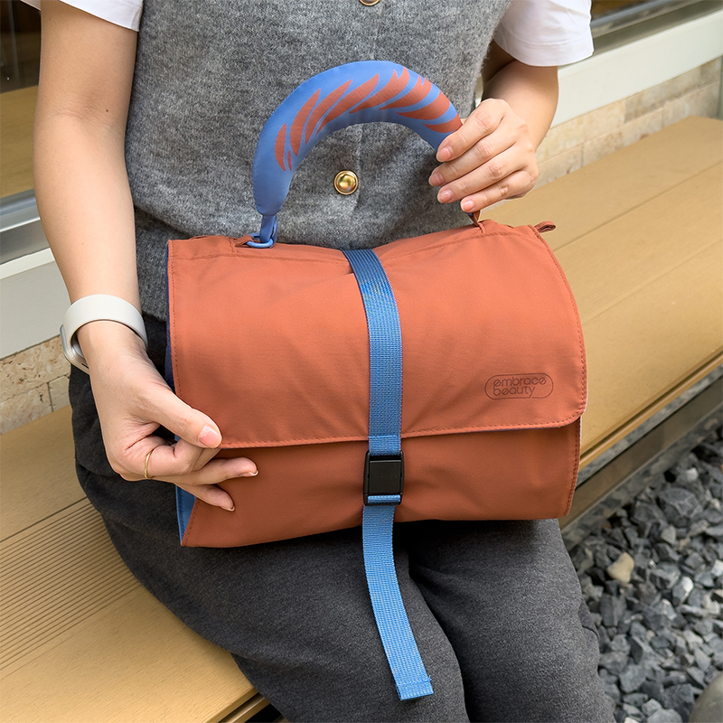一款主包,多種組合??勺杂烧迟N的魔術(shù)貼系統(tǒng),將兩個(gè)網(wǎng)紗化妝包、一個(gè)洗漱包與主包巧妙相連。既可整合為一個(gè)井然有序的“移動(dòng)梳妝臺(tái)”,亦可拆分為獨(dú)立單品,靈活應(yīng)對(duì)不同場(chǎng)景需求。