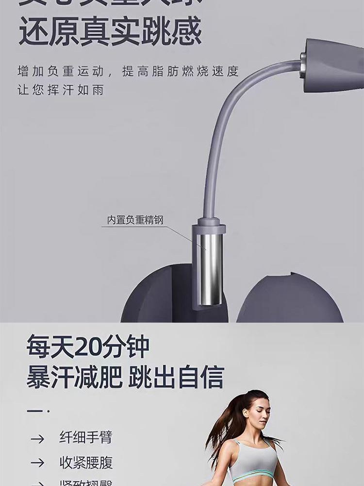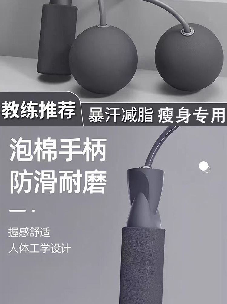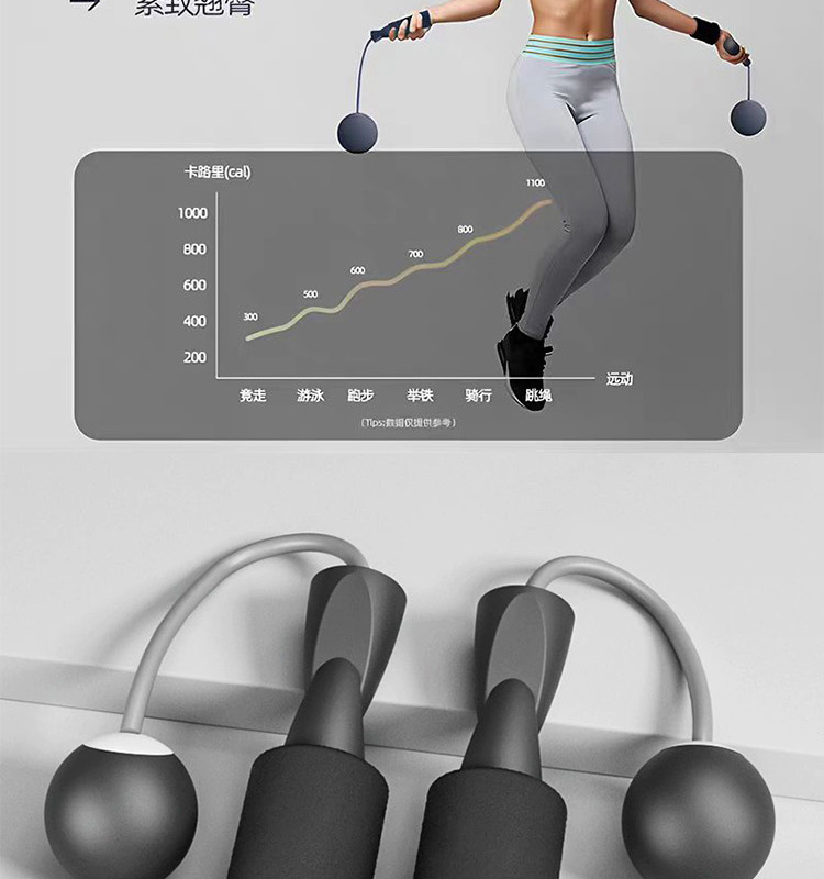 圓球跳繩:不限場地室內也能跳,優(yōu)質軸承絲滑耐用,高密度泡棉吸汗又防滑;