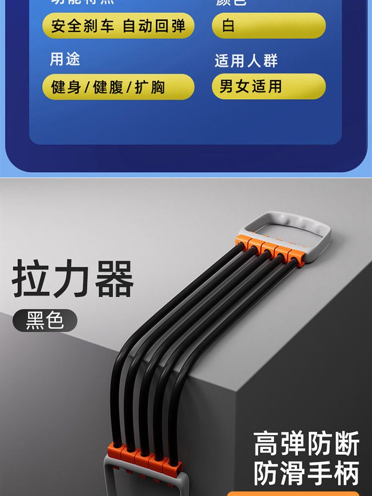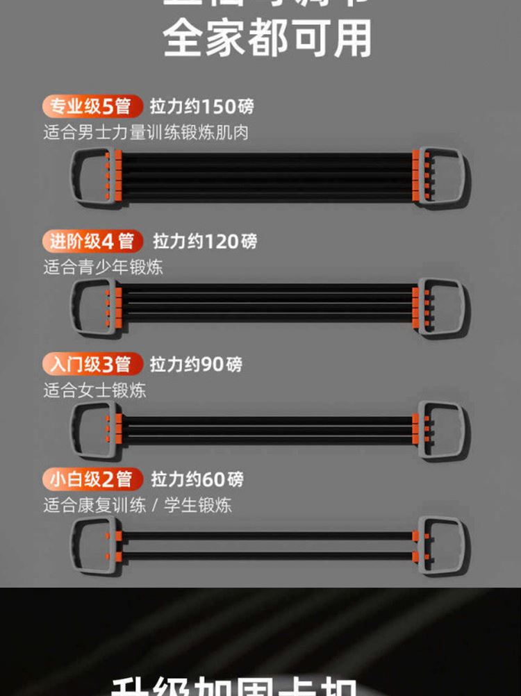 五檔拉力器:開肩美背,全身鍛煉,塑造好身形;30-150磅五檔調節(jié),不夾頭發(fā),不夾肉,男女通用;