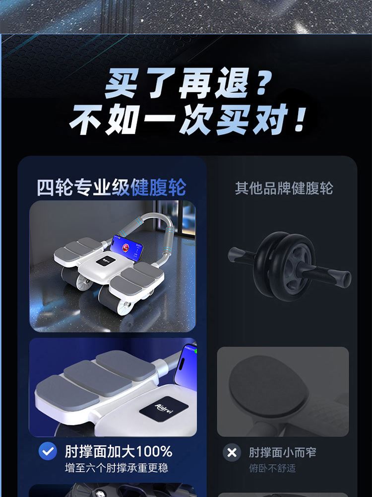 健腹輪:升級四輪六肘,平板支撐健腹二合一;科學健身,卷出馬甲線;