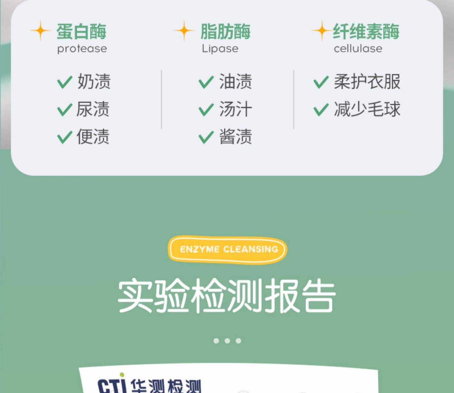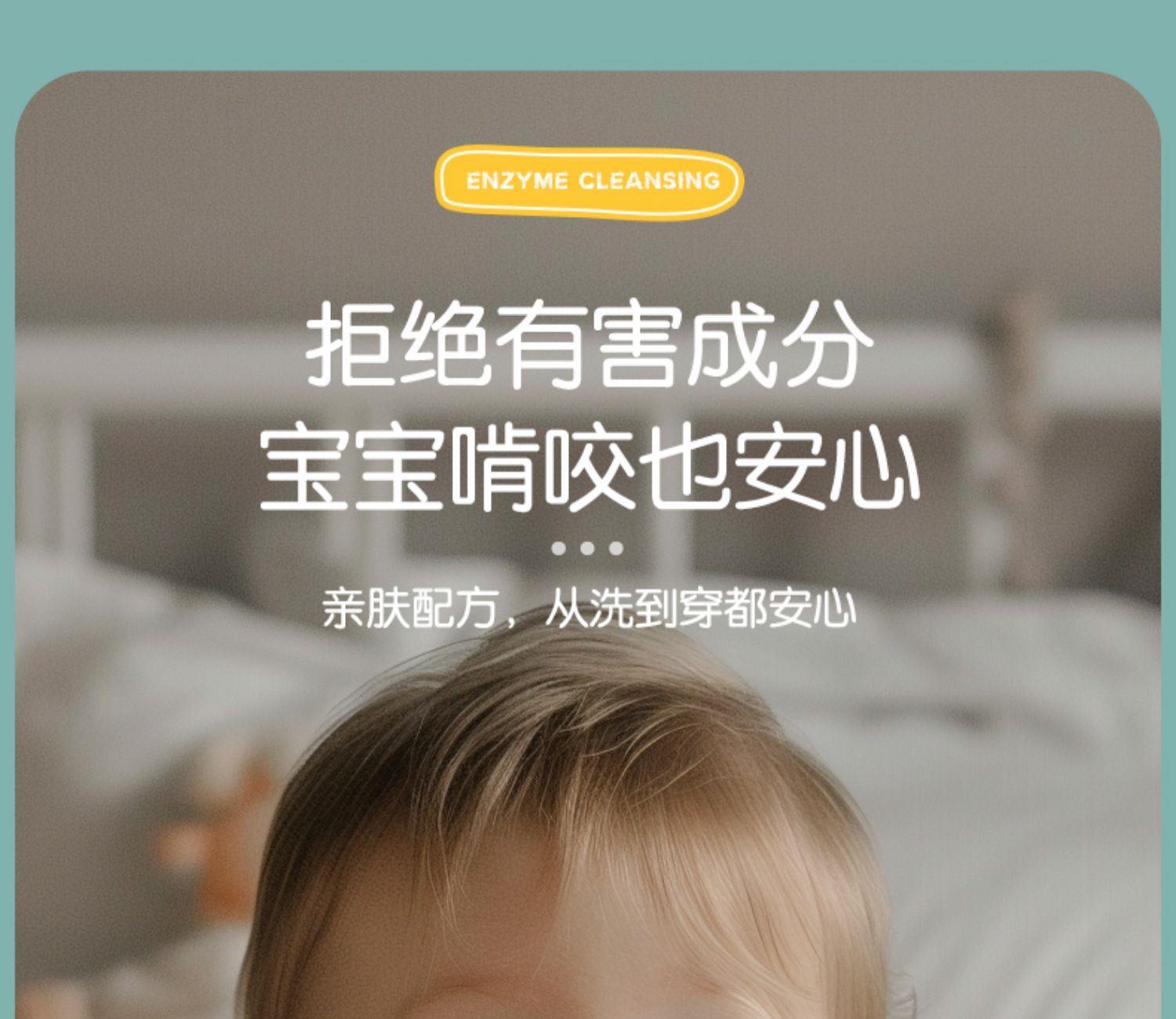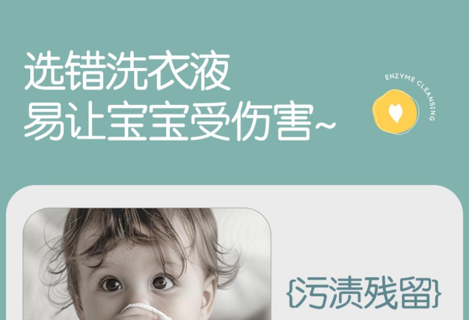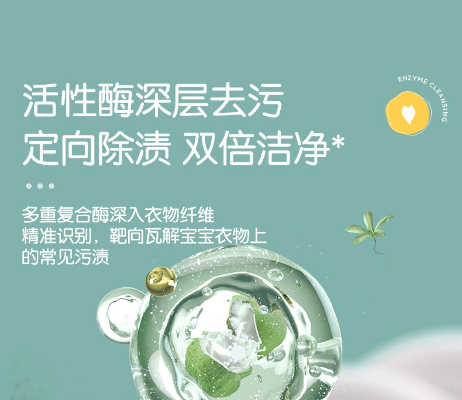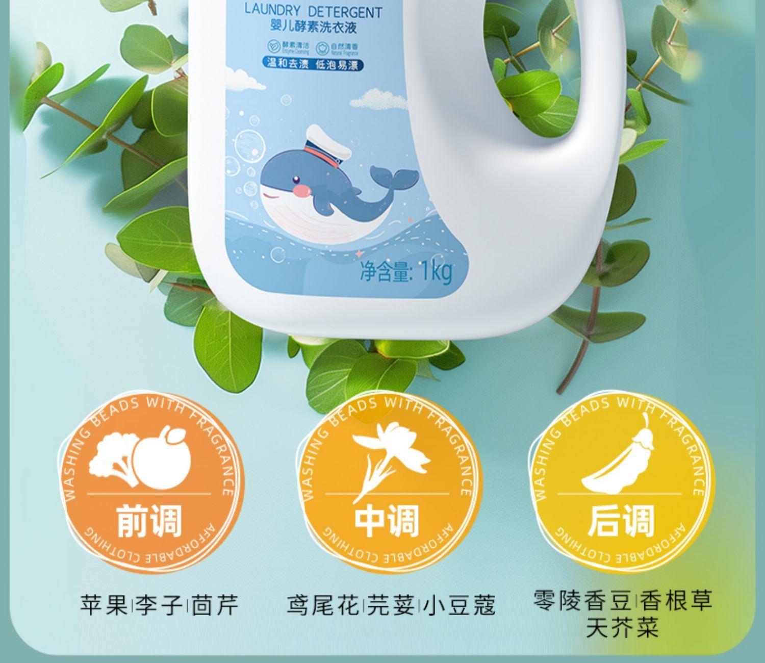 銷售規(guī)格:1kg/瓶*1瓶 主要成分:水、表面活性劑、椰子油衍生物、蛋白酶、脂肪酶、纖維素酶等保質(zhì)期:3年 1、含有多重復(fù)合酶,奶漬/尿漬輕松洗凈; 2、植物萃取精華,植物活性成分,全新呵護(hù)寶寶肌膚; 3、中性PH值,低泡易漂洗,護(hù)衣不傷手; 4 、安心植物香氛,洗除衣服異味,自然清香; 5、不添加熒光增白劑、無磷配方使用更放心。