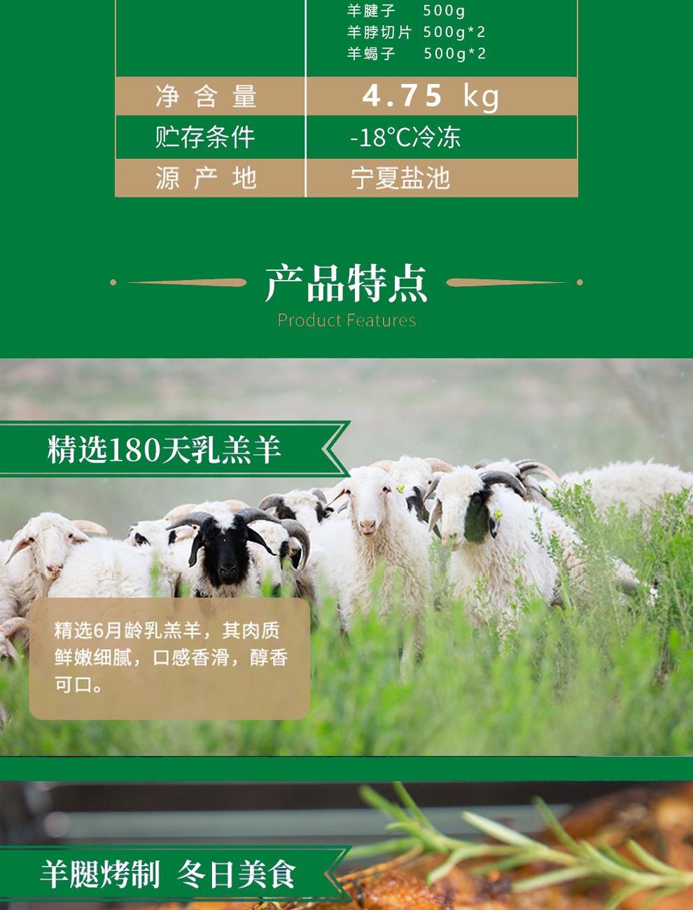 配置: 羊后腿 1750g 羊寸排 500g 羊腱子 500g 羊脖切片 500g*2 羊蝎子 500g*2 一方水土,養(yǎng)育一方特色灘羊鹽池灘羊食百草 “吃中草藥 (甘草、苦豆子)喝弱堿水"長大的羊。 中和體內酸性,使得肉質鮮嫩細膩,脂肪分布均勻原切灘羊羊肉不腥不膻。 寧夏鹽池縣 自然環(huán)境優(yōu)異,氣候冬長夏短 日照充足, 土地呈鹽堿化,使得水源呈弱堿性, 鹽池草原呈半沙漠化,其中含名貴中草藥約110種左右 新鮮屠宰,保證肉質鮮美!