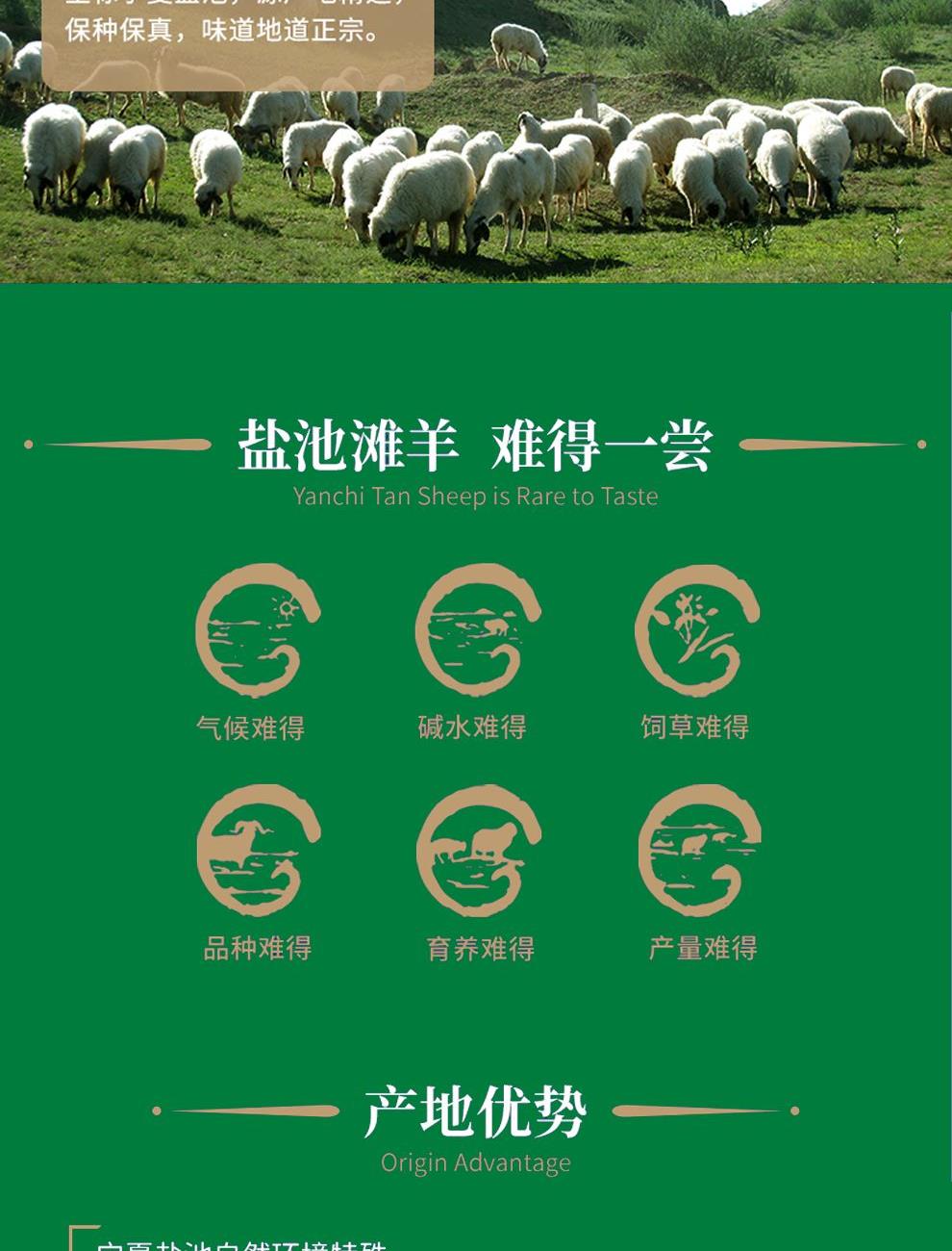 配置: 特級灘羊 整只酮體 15kg 一方水土,養(yǎng)育一方特色灘羊鹽池灘羊食百草 “吃中草藥 (甘草、苦豆子)喝弱堿水"長大的羊。 中和體內(nèi)酸性,使得肉質(zhì)鮮嫩細(xì)膩,脂肪分布均勻原切灘羊羊肉不腥不膻。 寧夏鹽池縣 自然環(huán)境優(yōu)異,氣候冬長夏短 日照充足, 土地呈鹽堿化,使得水源呈弱堿性, 鹽池草原呈半沙漠化,其中含名貴中草藥約110種左右 新鮮屠宰,保證肉質(zhì)鮮美!