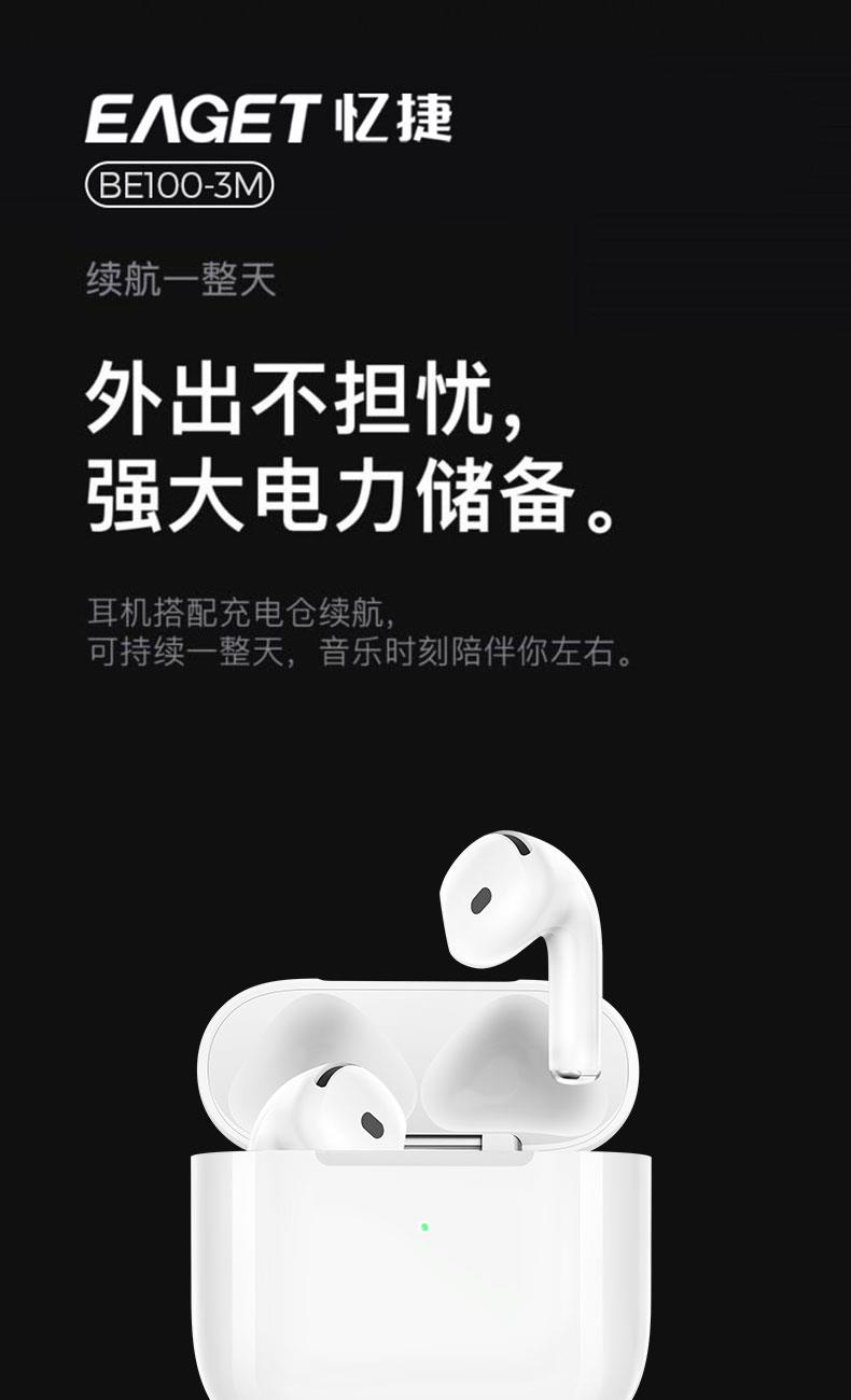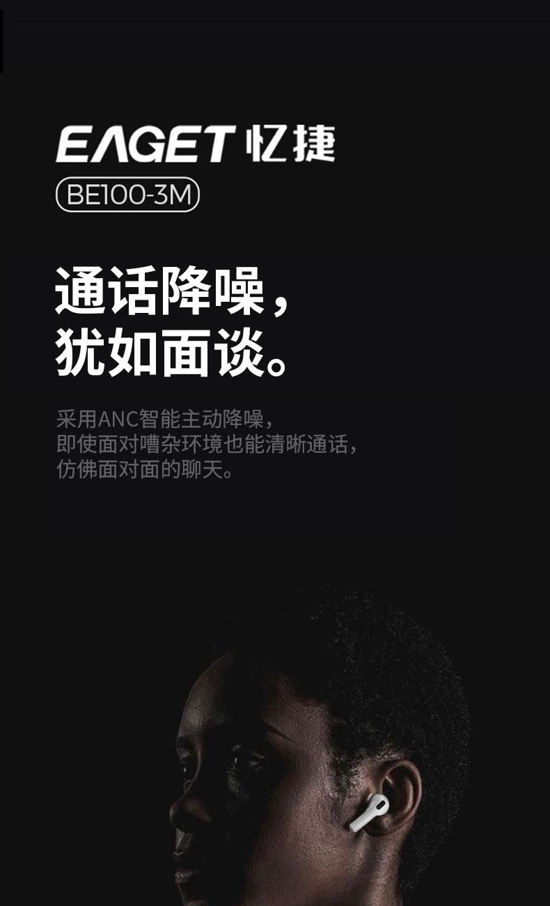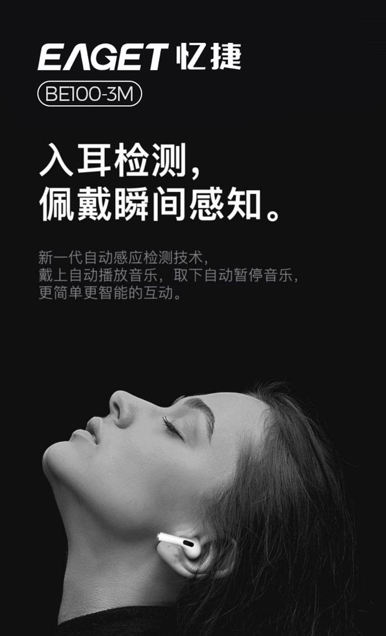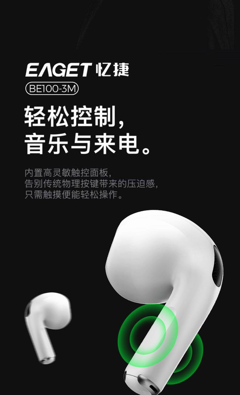 憶捷BE100-3M藍(lán)牙無(wú)線耳機(jī)超長(zhǎng)續(xù)航便攜式迷你敲擊觸控