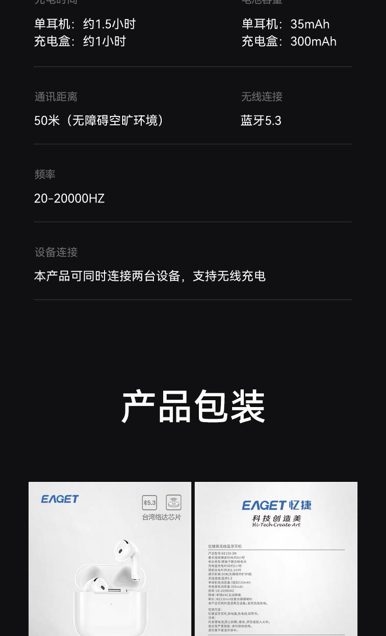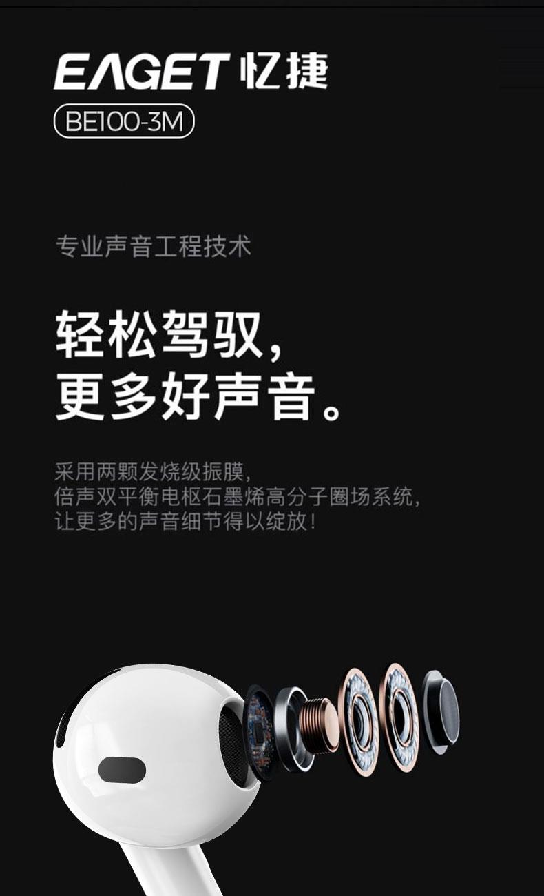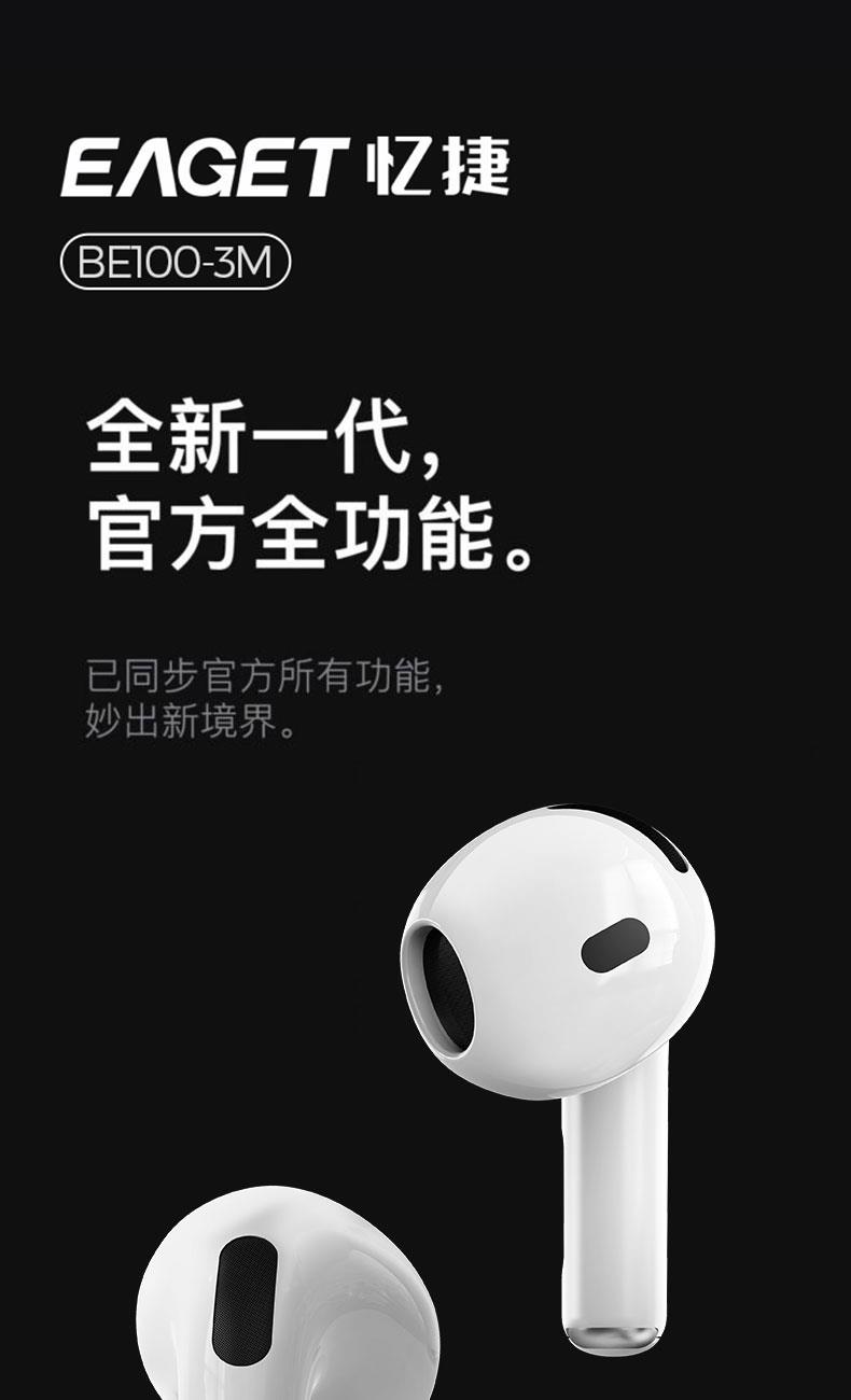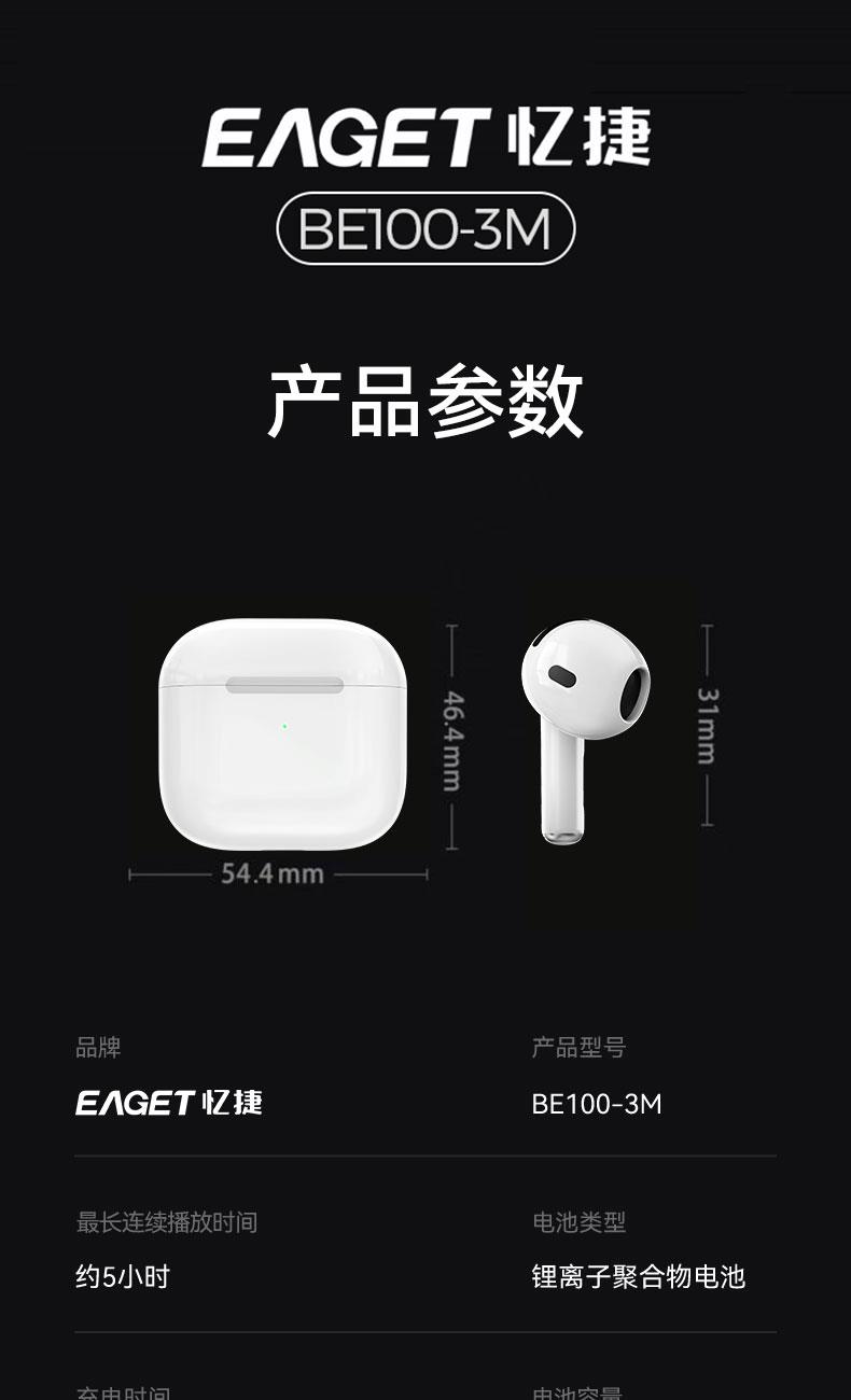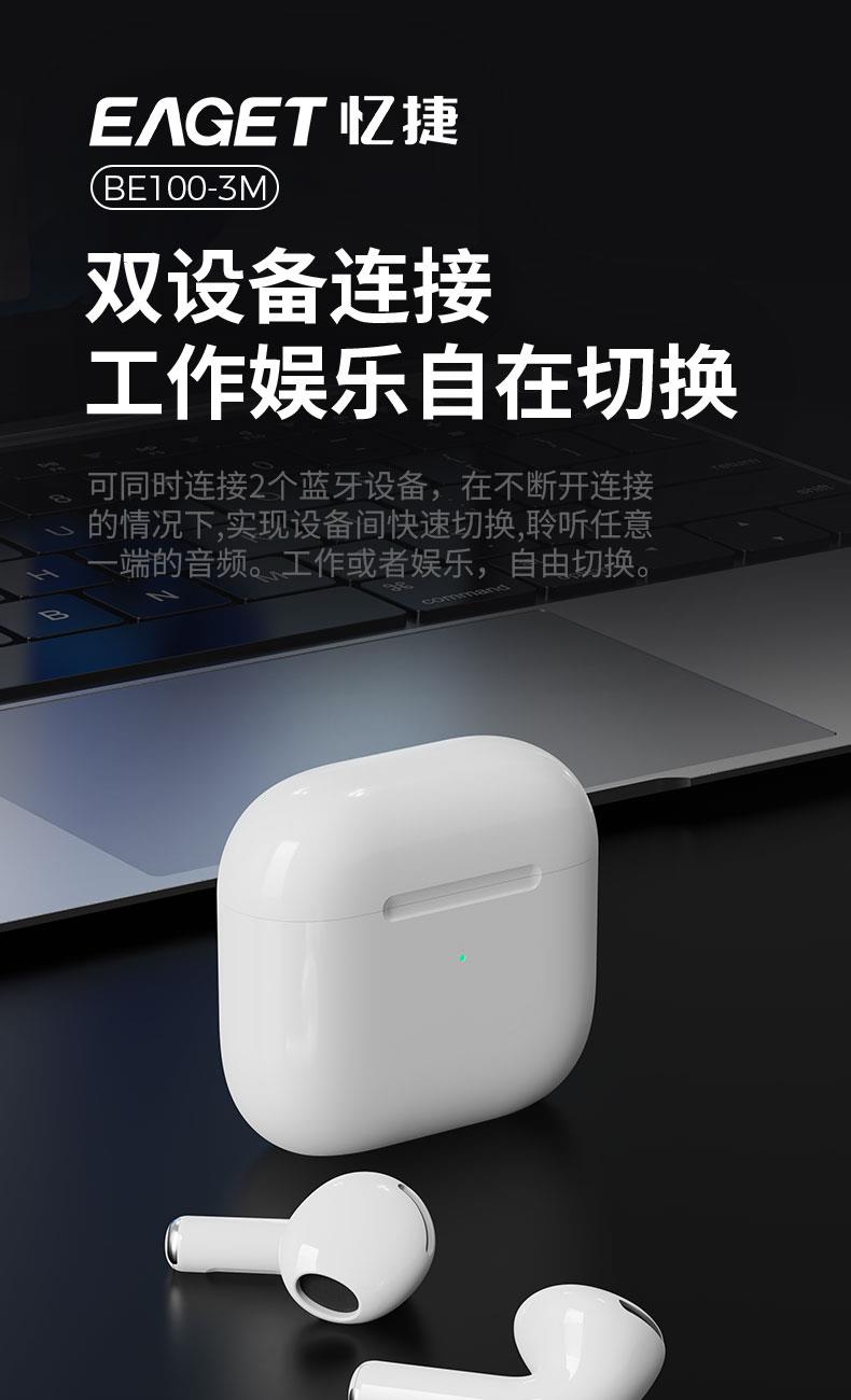 憶捷BE100-3M藍(lán)牙無(wú)線耳機(jī)超長(zhǎng)續(xù)航便攜式迷你敲擊觸控